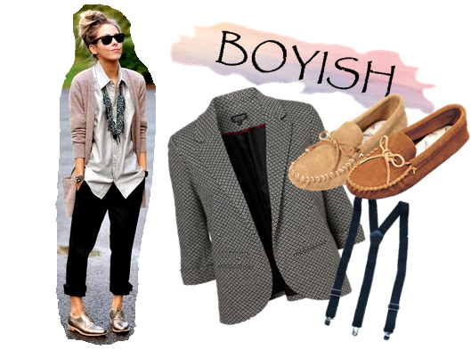 Sabe quando dá aquela vontade de pegar as roupas e sapatos do amigo, irmão? Ou até mesmo do namorado? Pois bem, se algumas de vocês se encaixam nisso, considerem seus estilos boyish! A Boyish para quem não sabe é a união e adaptação de peças femininas com as masculinas, repleta de acessórios como: gravatas, blazers, suspensórios coletes, calças de alfaiate, mocassins, camisas sociais, entre outros… Vocês vão perceber que todos os looks visam o conforto, mas se algumas de vocês forem ousadas nada impede de formar um look todo boyish e nos pés ir de salto, sapatilhas ou sandálias. Vejam abaixo alguns looks: